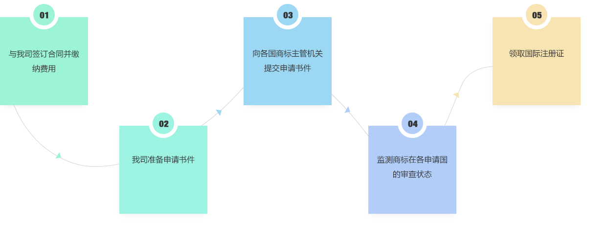 單一國家注冊 即分別向各國商標主管機關申請商標注冊。